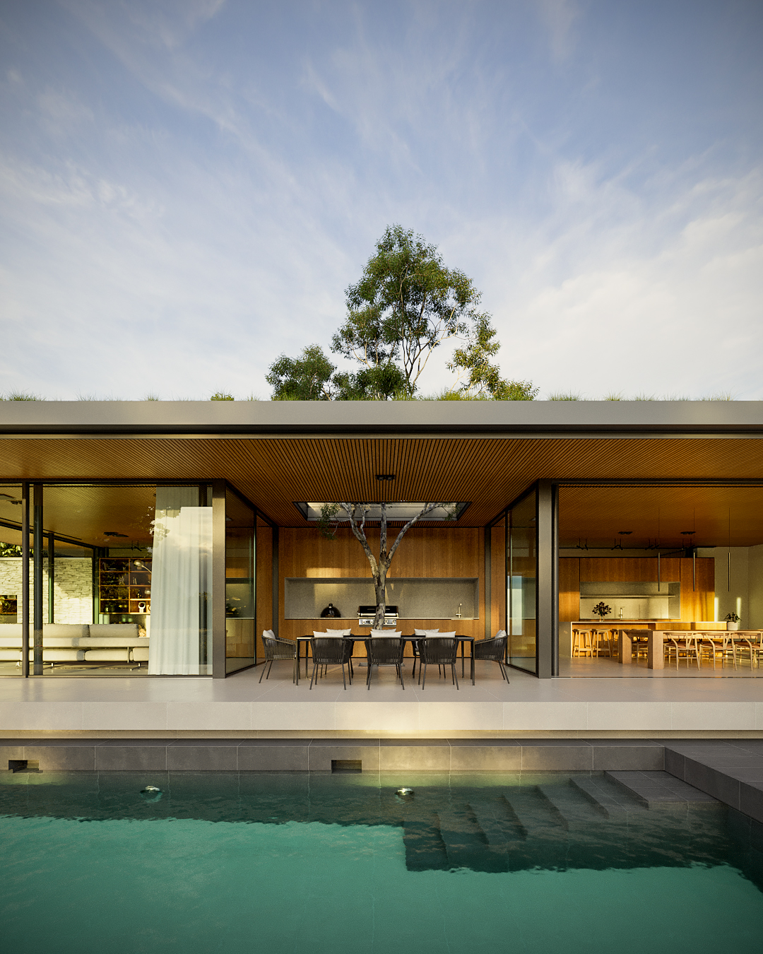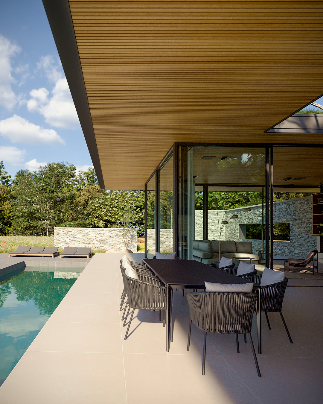 Meadow House est une exploration architecturale mettant en scène une maison contemporaine intégrée avec douceur dans son environnement naturel. Le projet joue sur les volumes, la lumière et les matières afin de créer une atmosphère à la fois moderne et chaleureuse. Les rendus 3D cherchent à traduire une architecture vivante, où l’intérieur et l’extérieur dialoguent en harmonie, et où chaque espace est pensé pour le confort et la sérénité.